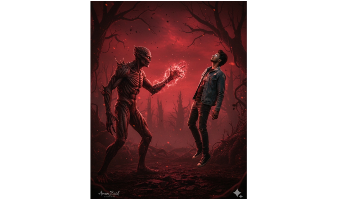 Create a high-resolution, wide angle, realistic image of me (reference pic) being levitated by Vecna from Stranger Things, keep the original and detailed features of the character, full body image, he is in front of me with one hand standing in my direction, ‘m in his trance power that makes my eyes turn white. I’m wearing 80’s style clothes. The camera captures us from the side. The background is his place in upside down. Cinematic. Red lights. 9:16 Portrait. don’t change the face Keep my face exactly the same as in the uploaded photo — do not change or edit my face.