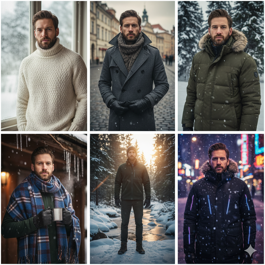 अगर आप AI से stylish, sharp और clean winter portraits बनाना चाहते हैं, तो सही prompt structure बहुत जरूरी है। नीचे दिए गए prompts specially men’s winter styling, lighting, outfits और background को ध्यान में रखकर लिखे गए हैं।